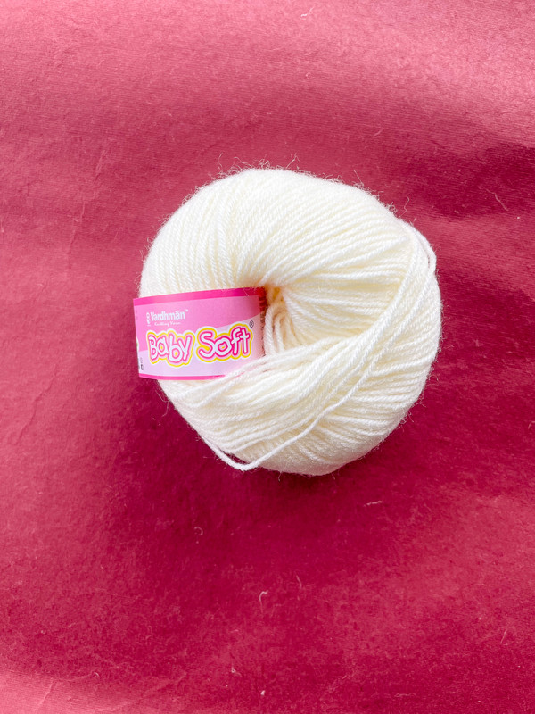 Vardhman Baby Soft Yarn is a premium 100% acrylic hand knitting yarn designed for softness, comfort, and smooth stitching. This 25g ball in a classic cream shade is perfect for baby garments and lightweight crochet or knitting projects.